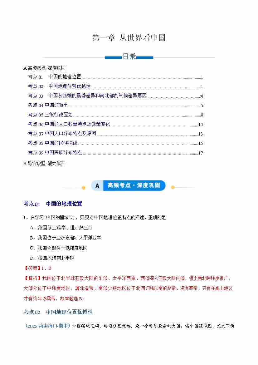 专题01从世界看中国(专项训练)(学生版)