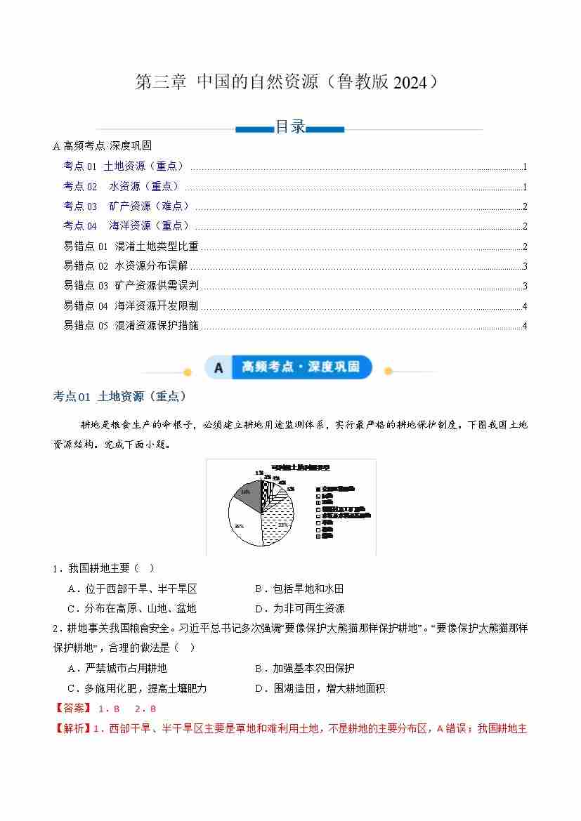 专题03 中国的自然资源(专项训练)(教师版)
