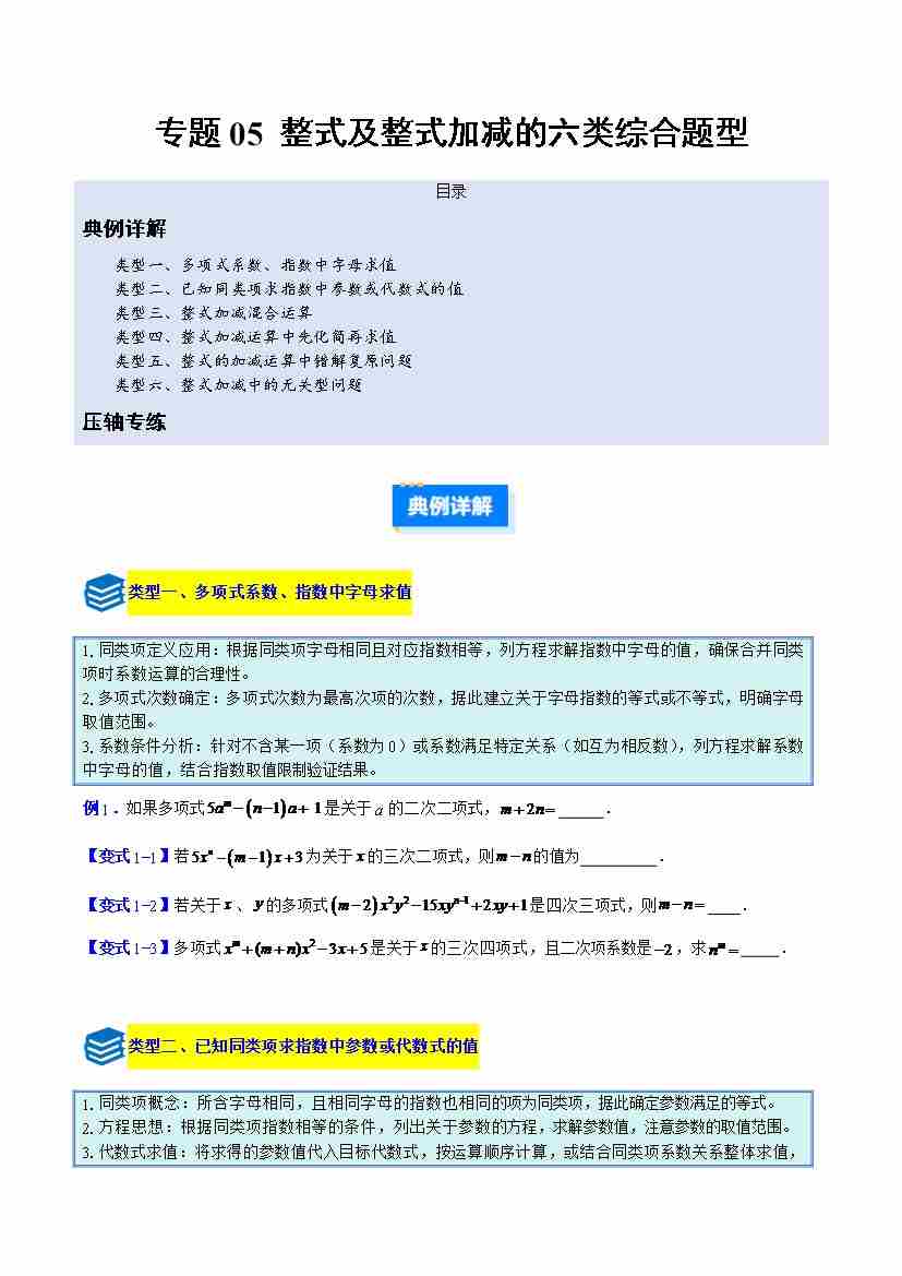 专题05 整式及整式加减的六类综合题型(压轴题专项训练) (学生版)