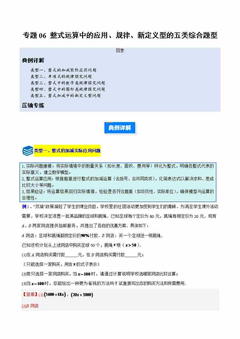 专题06 整式运算中的应用、规律、新定义型的五类综合题型(压轴题专项训练) (学生版)