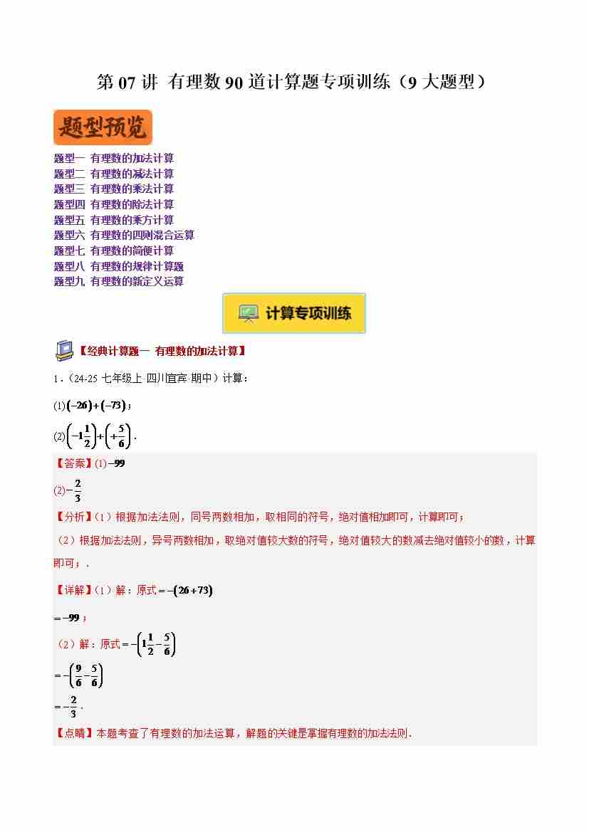 专题07 有理数90道计算题专项训练(9大题型)(解析版)