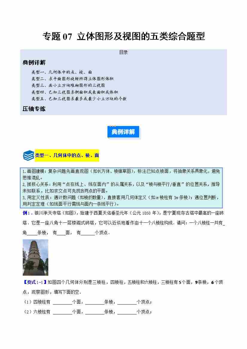 专题07 立体图形及视图的五类综合题型(压轴题专项训练)(教师版)