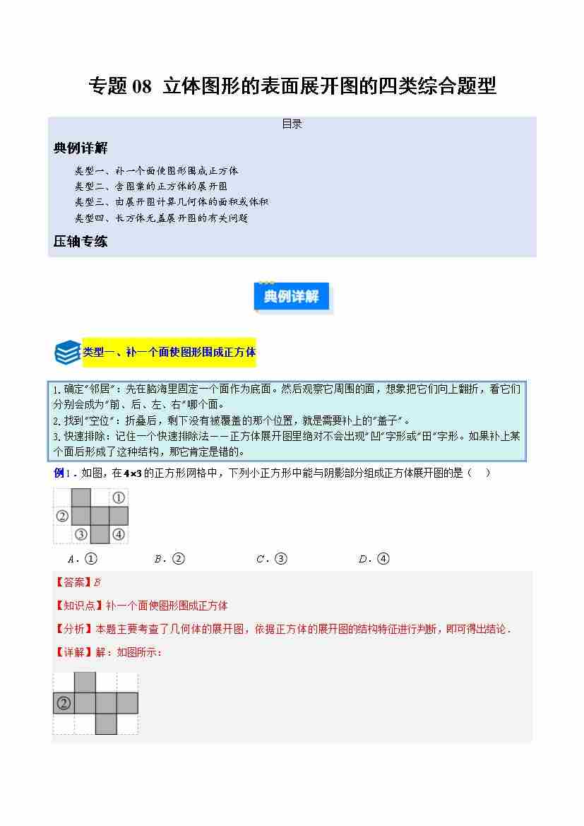 专题08 立体图形的表面展开图的四类综合题型(压轴题专项训练)(教师版)