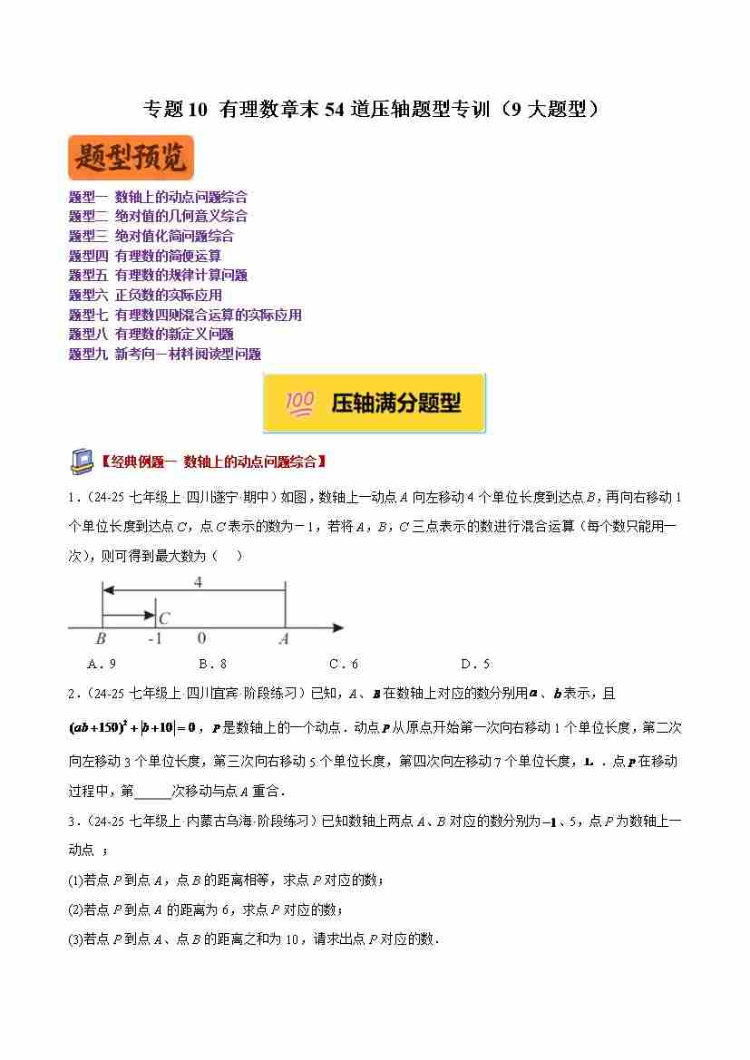 专题10 有理数章末54道压轴题型专训(9大题型)(原卷版)