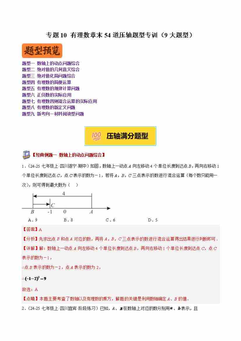 专题10 有理数章末54道压轴题型专训(9大题型)(解析版)