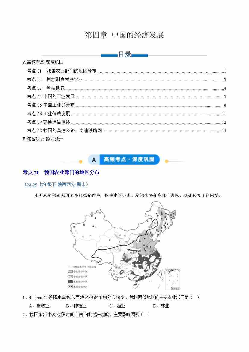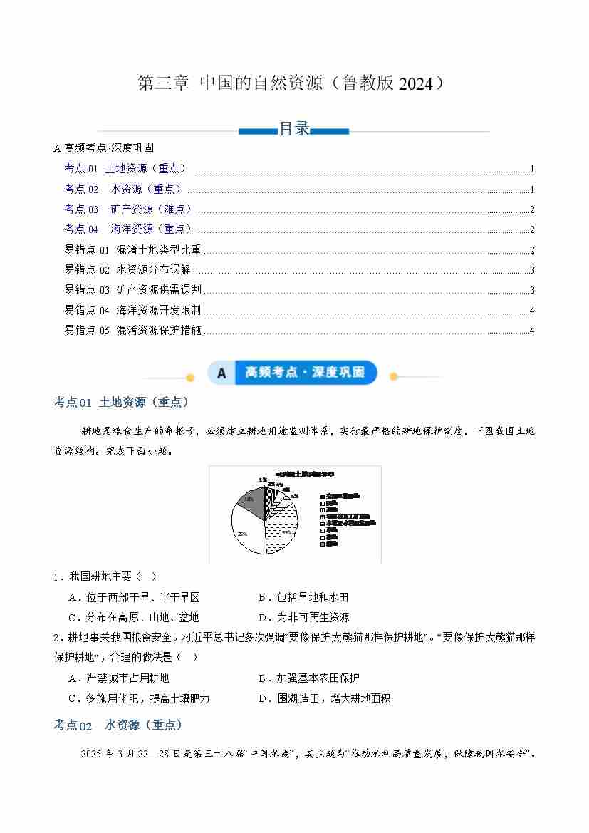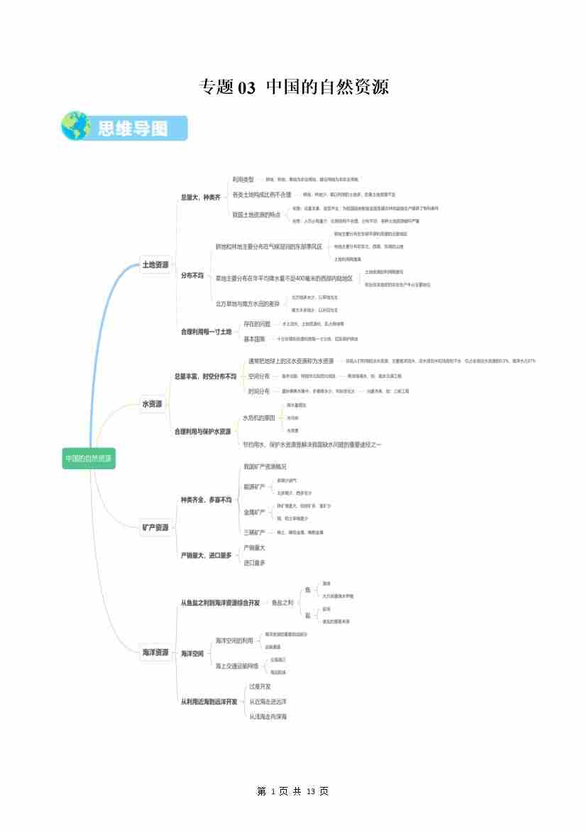 专题03 中国的自然资源(专项训练)(学生版)