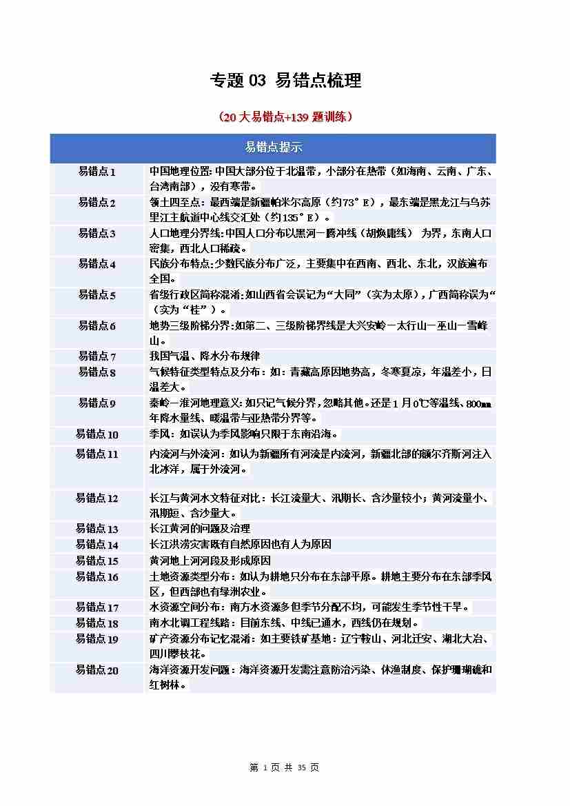 专题03 中国的自然资源(期中知识清单)背记版)