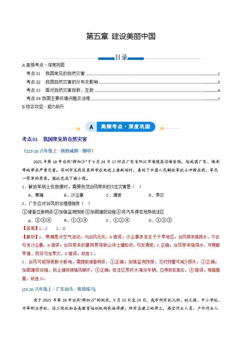 专题05建设美丽中国(专项训练)(学生版)