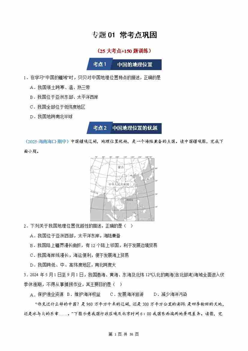 专题01 常考点巩固(期中专项训练)(原卷版)