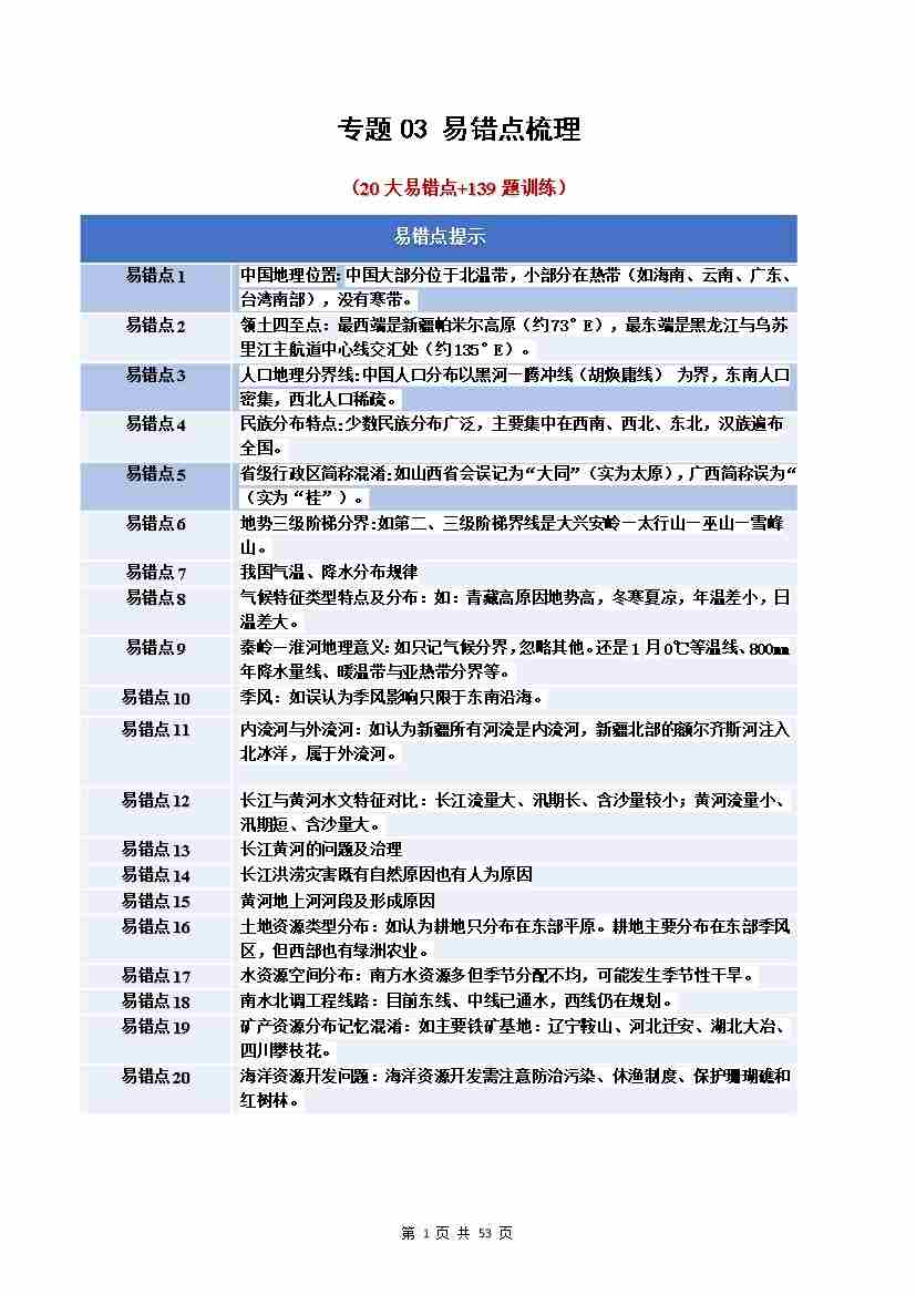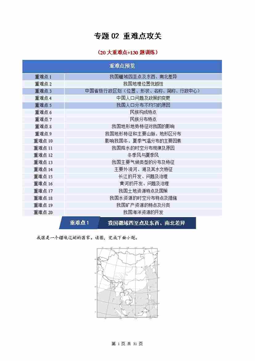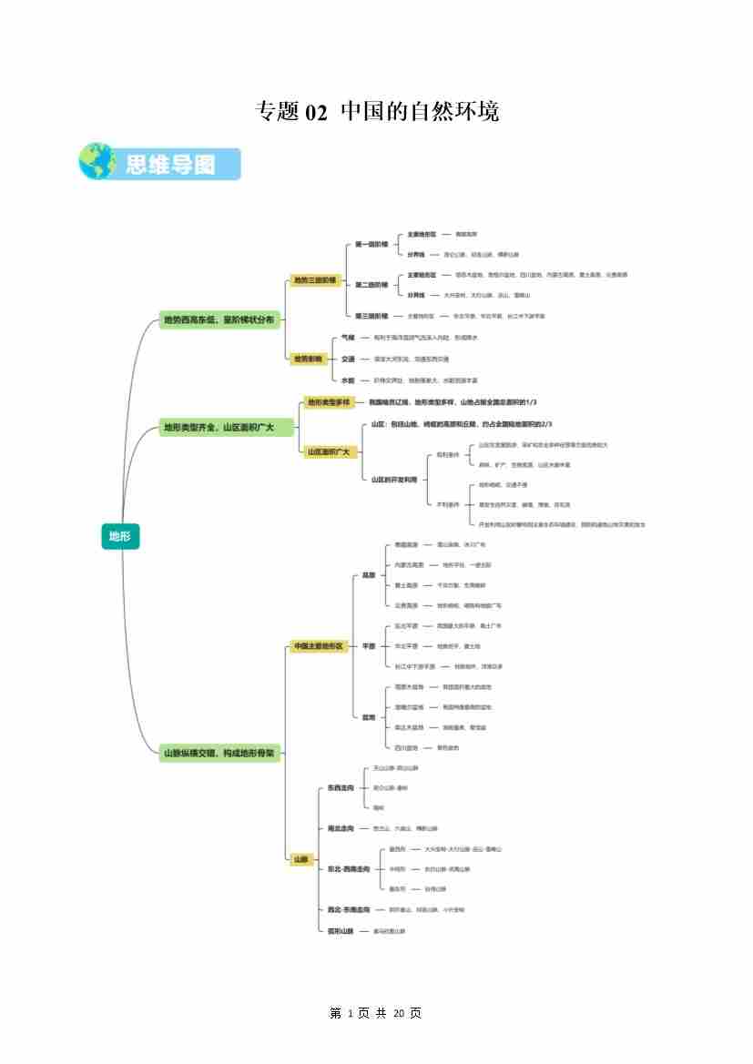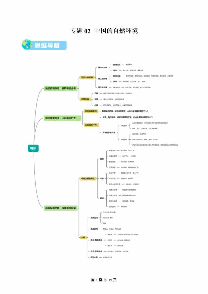 专题02 中国的自然环境(期中知识清单)(背记版)