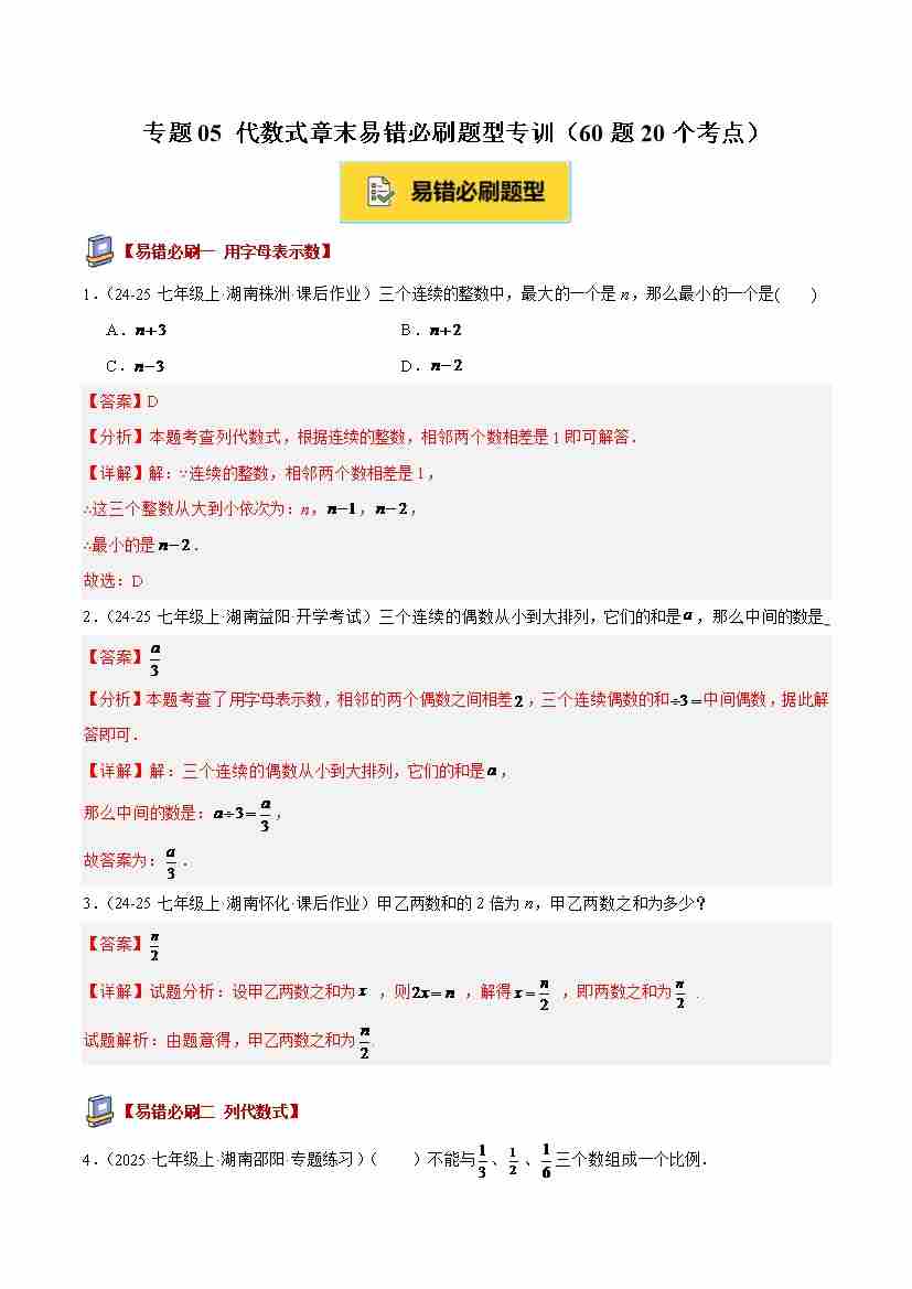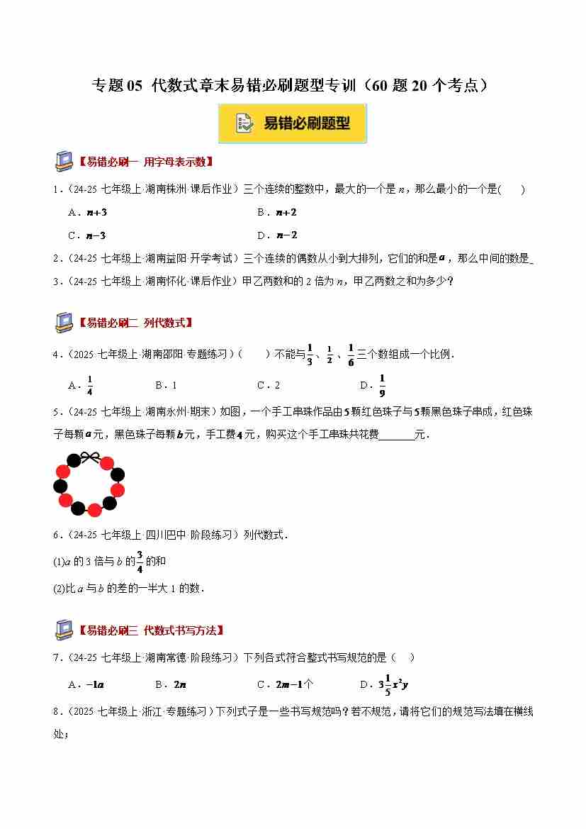 专题05 代数式章末易错必刷题型专训(60题20个考点)(学生版)