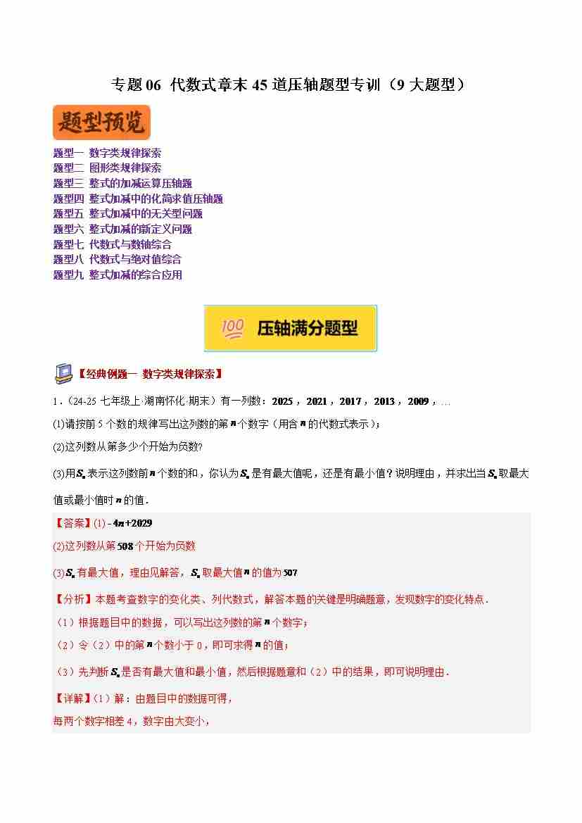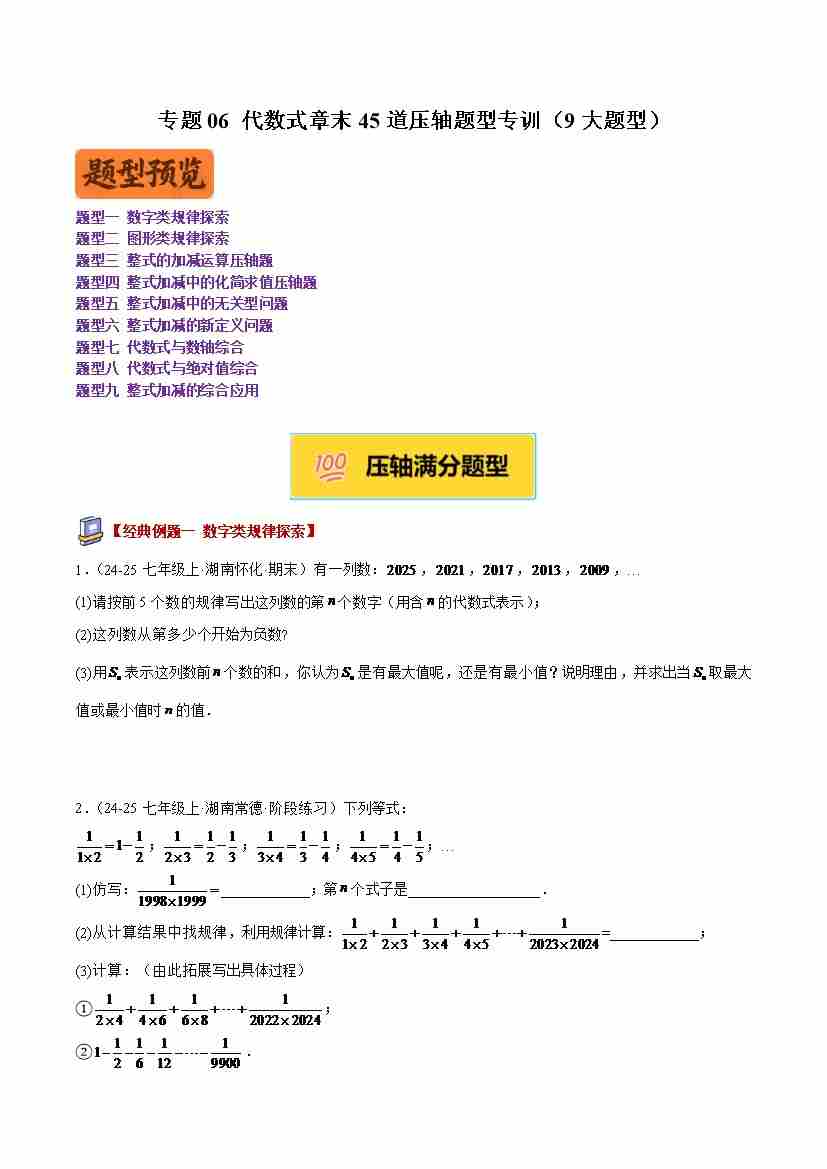 专题06 代数式章末45道压轴题型专训(9大题型)(学生版)