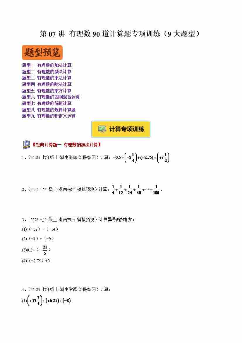 专题07 有理数90道计算题专项训练(9大题型)(学生版)