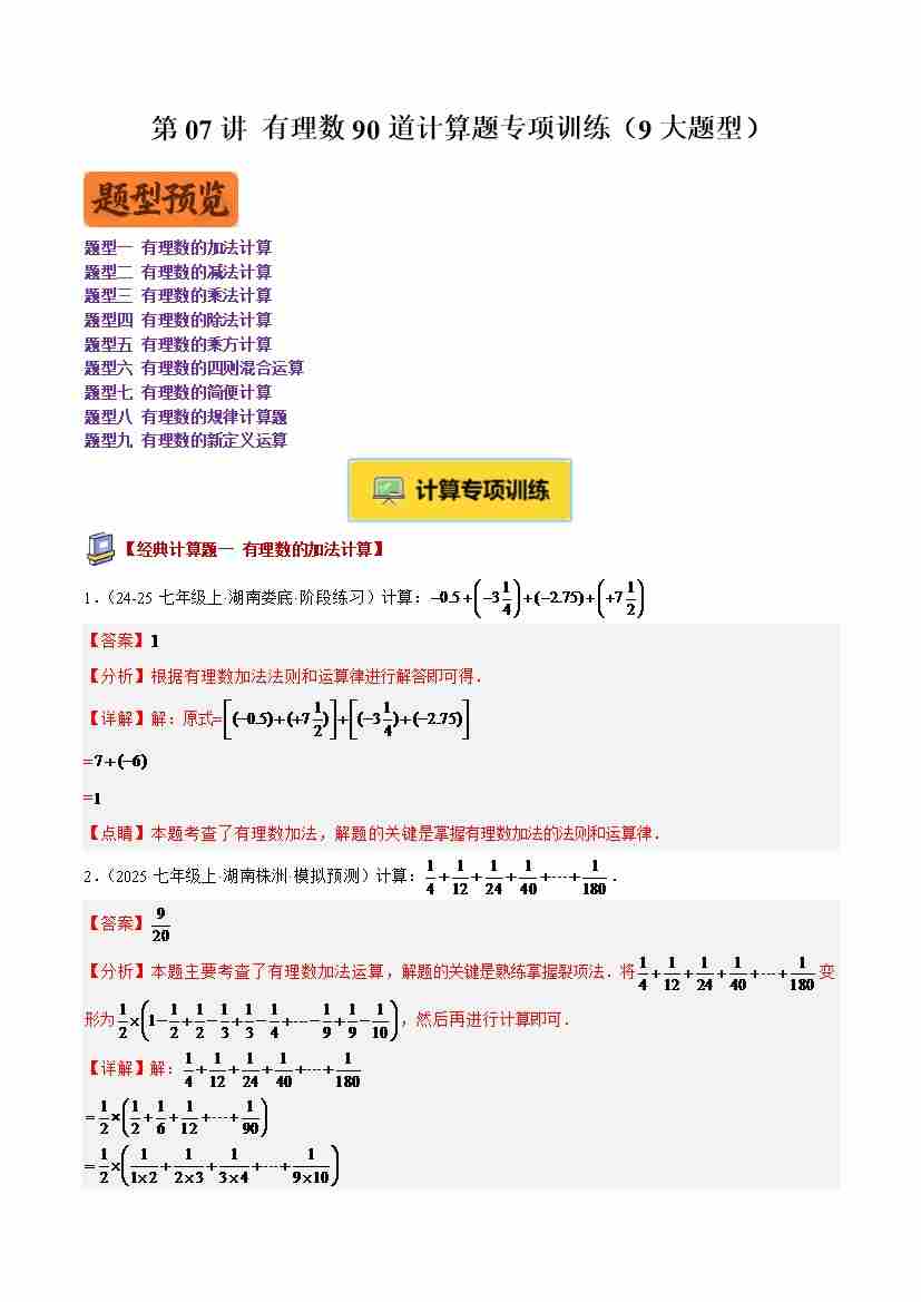专题07 有理数90道计算题专项训练(9大题型)(教师版)