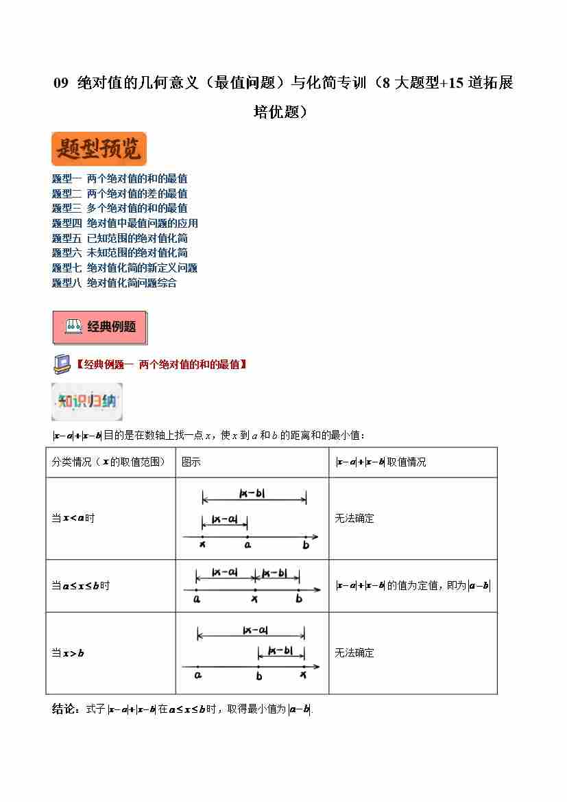 专题09 绝对值的几何意义(最值问题)与化简专训(8大题型 15道拓展培优题)(学生版)