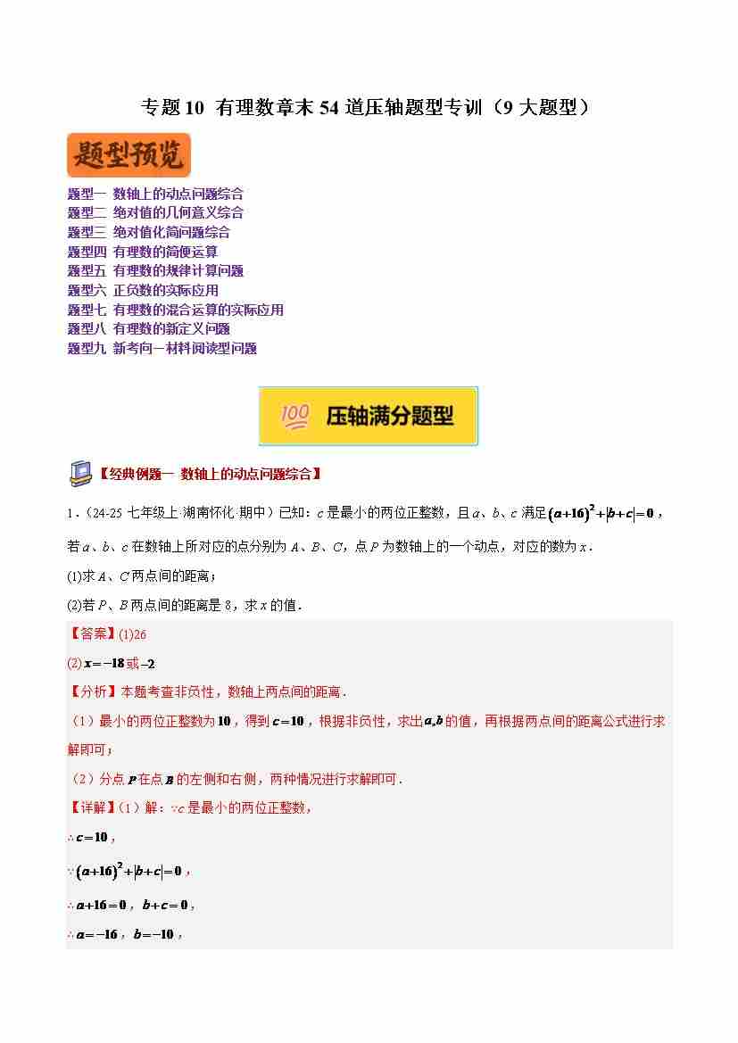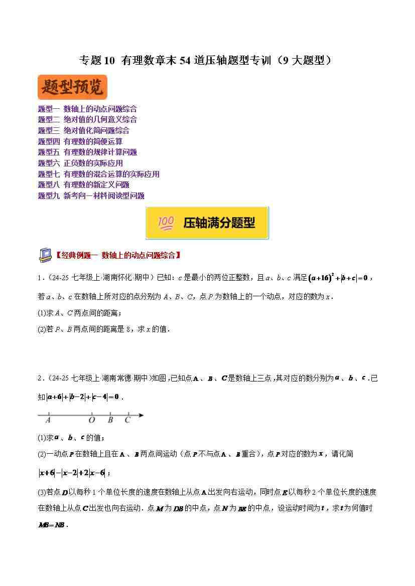 专题10 有理数章末54道压轴题型专训(9大题型)(教师版)