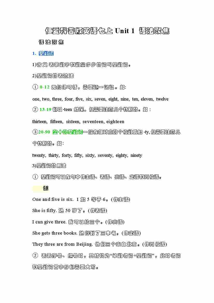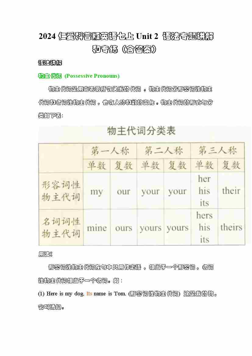 Unit 2 语法专题讲解和专练仁爱科普版英语七年级上册