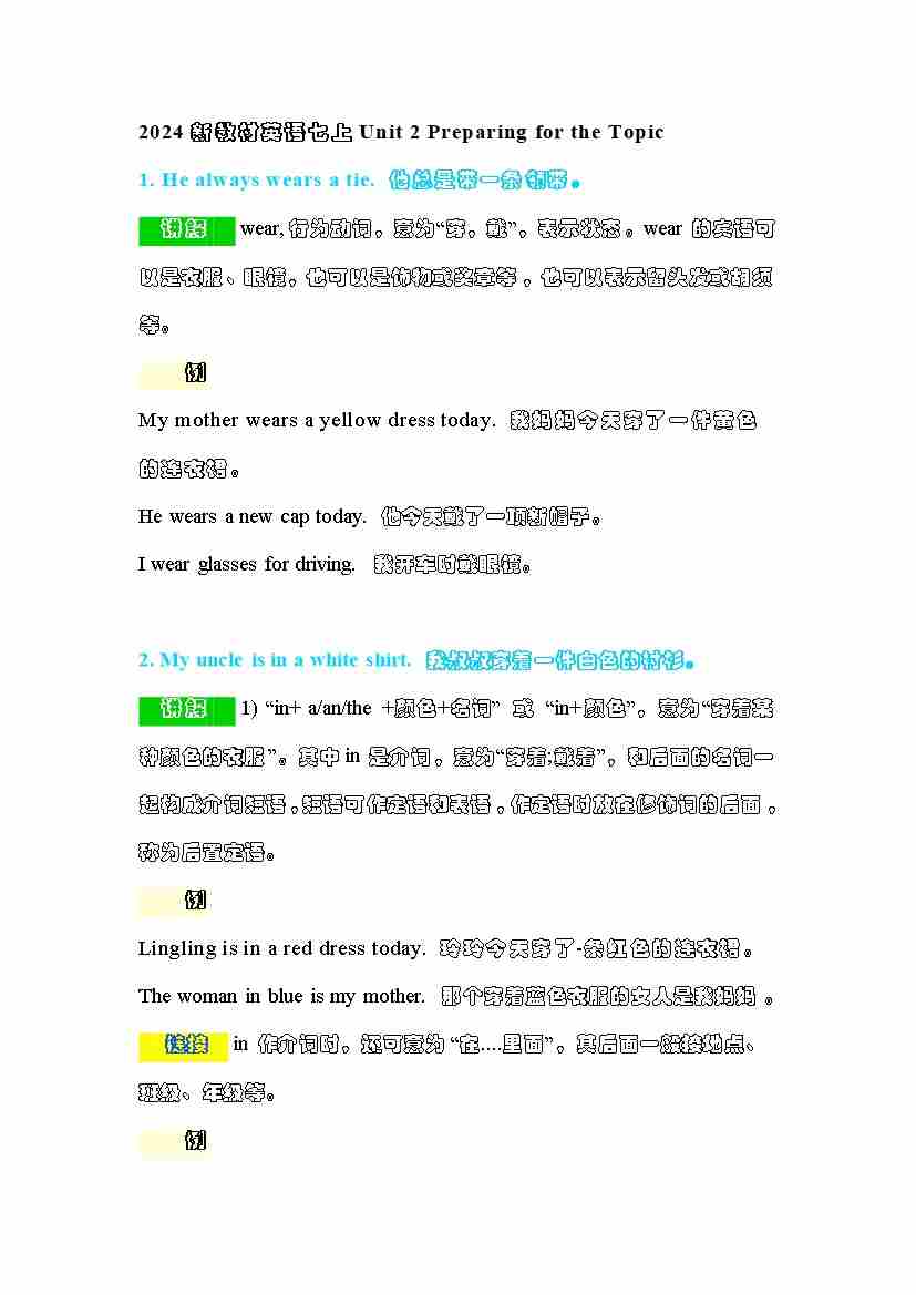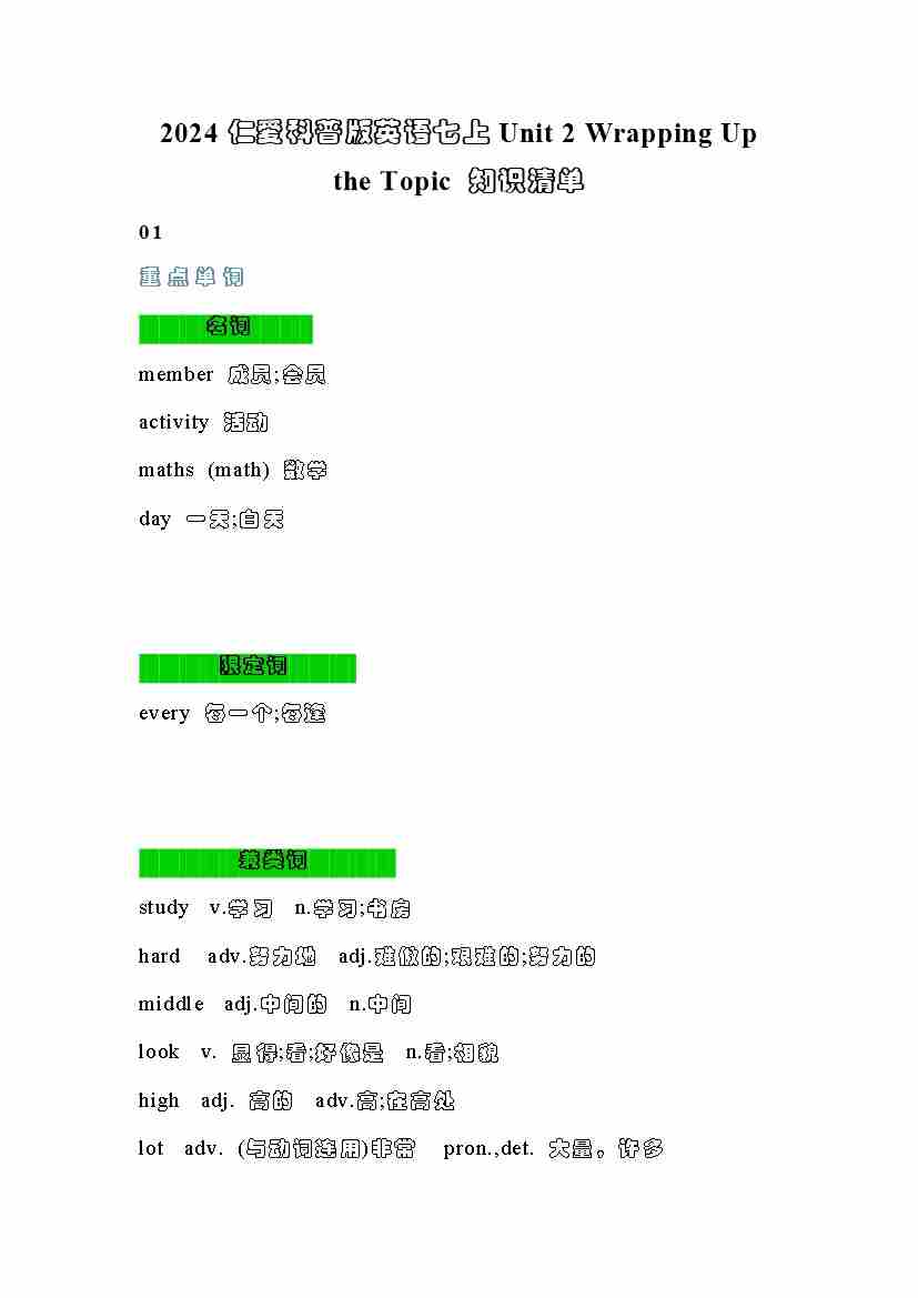 Unit 2 Preparing for the Topic 讲义仁爱科普版(2024)七年级英语上册