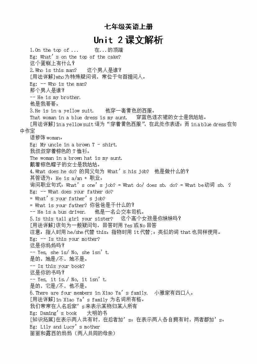 Unit 2课文解析 仁爱科普版(2024)七年级英语上册