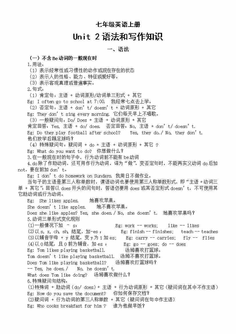 Unit 2语法和写作知识 -仁爱科普版七年级英语上册