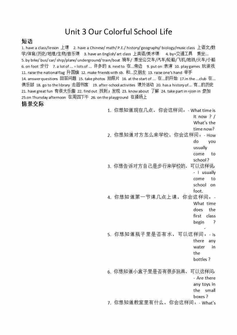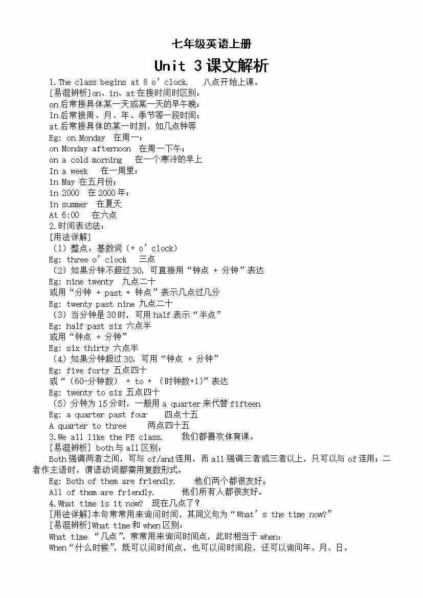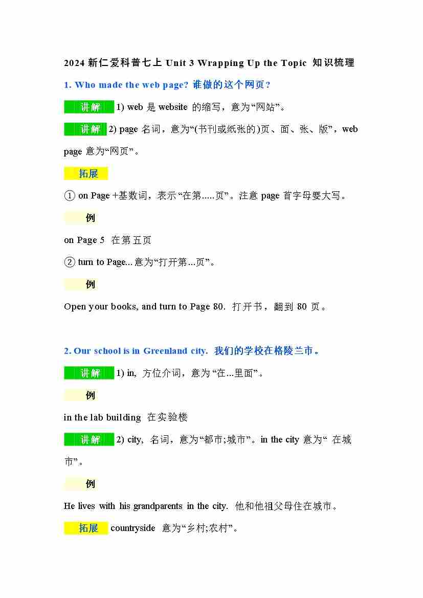 Unit 3课文解析 仁爱科普版(2024)七年级英语上册