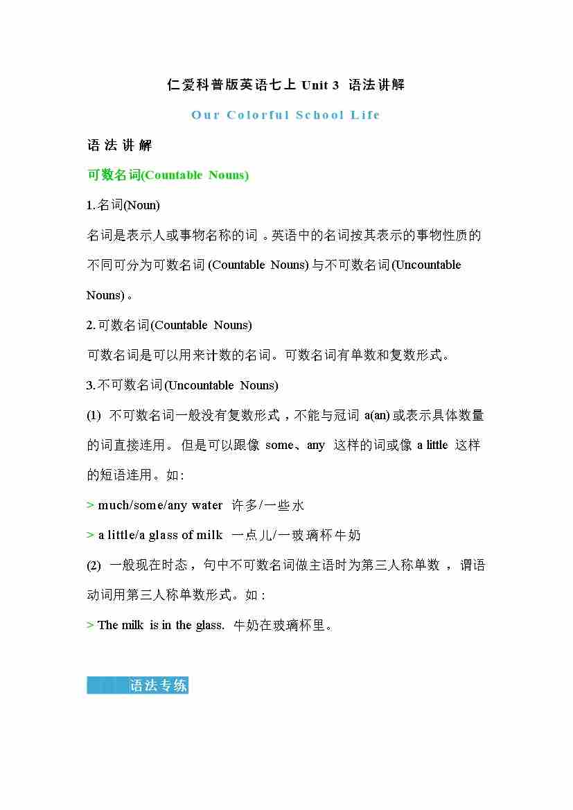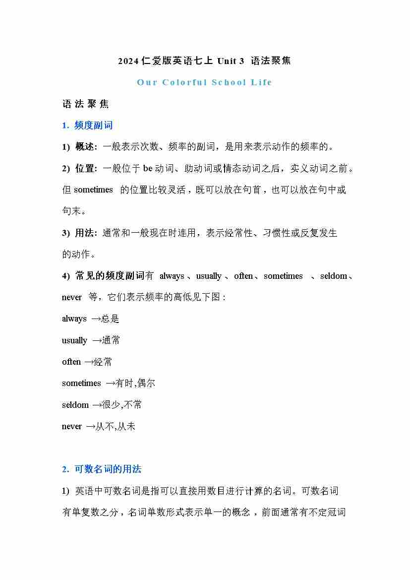 Unit 3 语法讲义 -仁爱科普版(2024)七年级英语上册