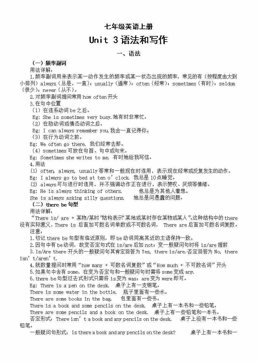 Unit 3语法和写作讲义 -仁爱科普版(2024)英语七年级上册