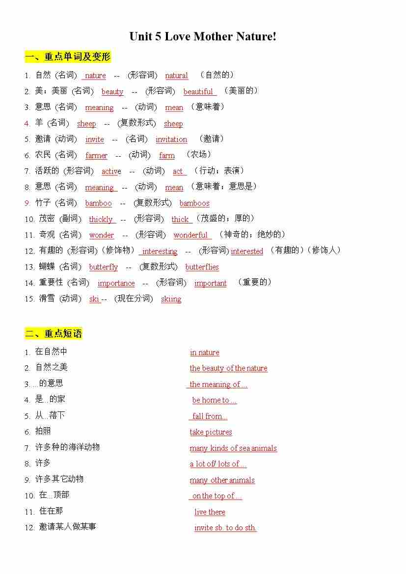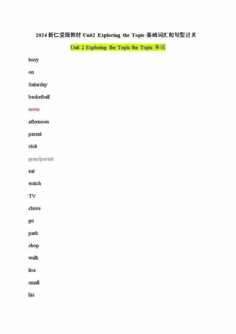 Unit2 Exploring the Topic基础词汇和句型过关仁爱版英语七年级上册