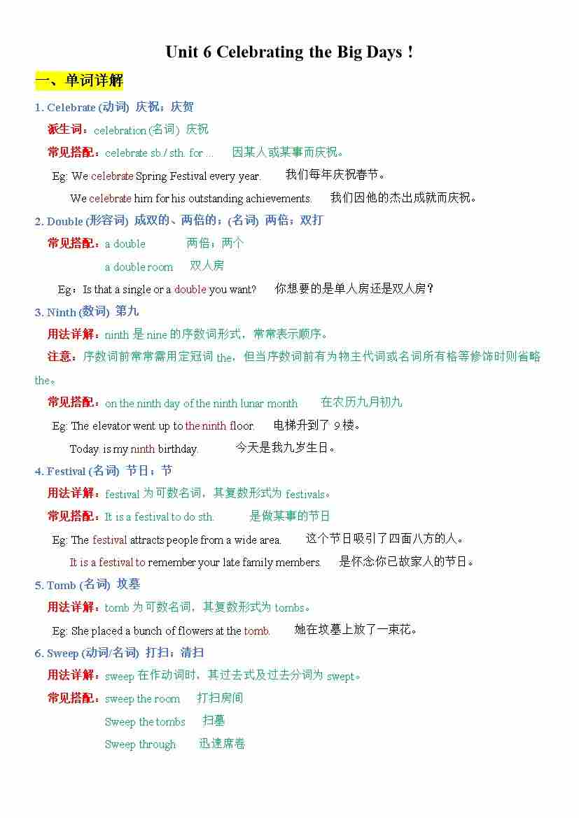 Unit 6 Celebrating the Big Days 讲义 仁爱科普版(2024)七年级英语上册