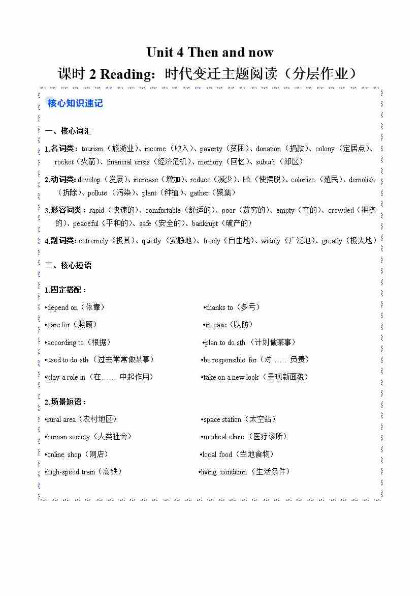 Unit 4 Then and now 课时2 Reading:时代变迁主题阅读(分层作业)(原卷版)