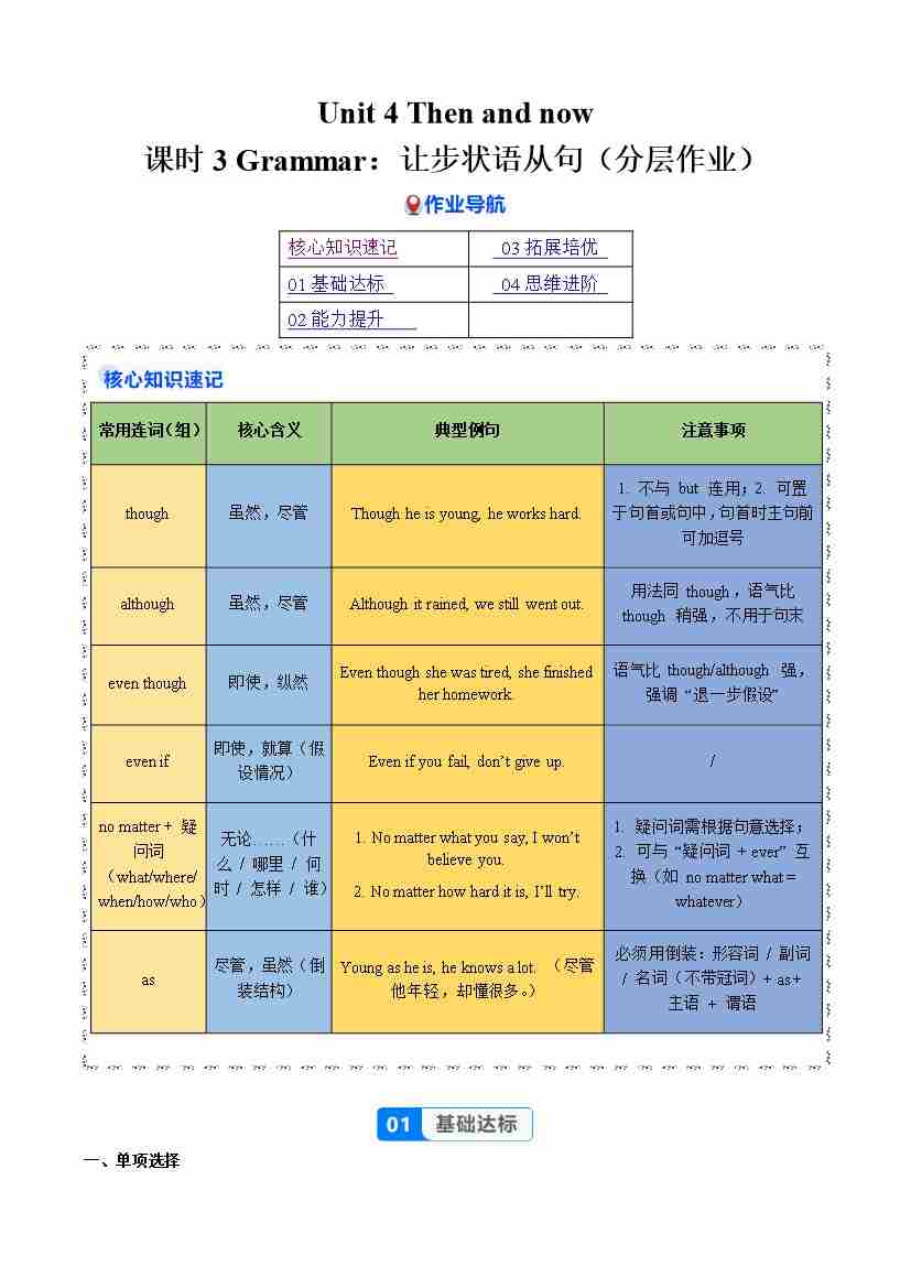 Unit 4 课时3 Grammar:让步状语从句(分层作业)(解析版)
