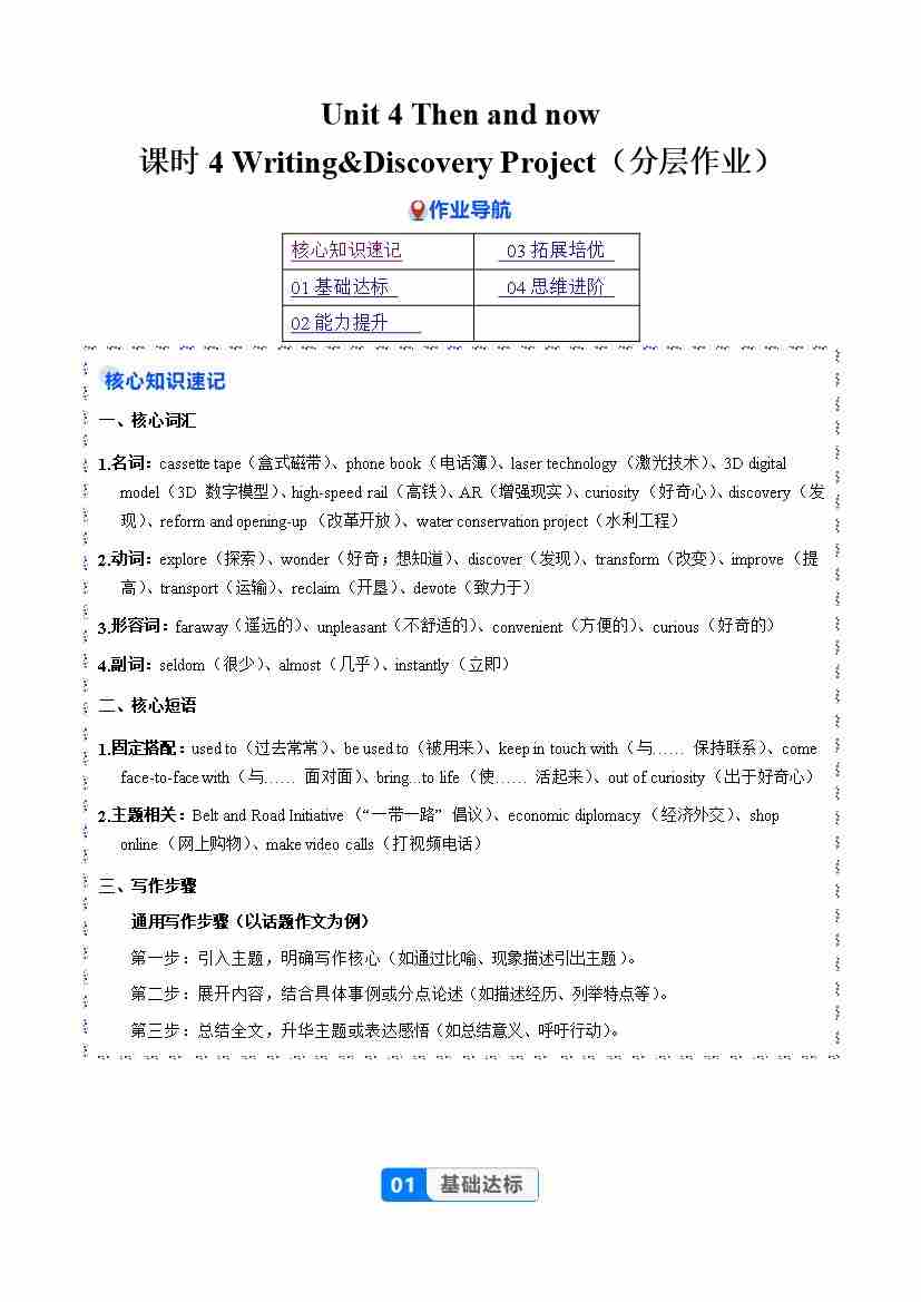 Unit 4 课时4 D Writing & Discovery & E Project(分层作业)(解析版)