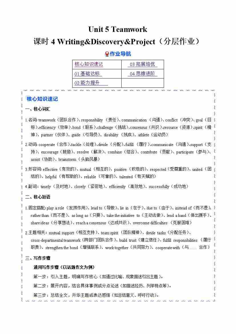 Unit 5 Teamwork 课时4 Writing&Discovery &Project(分层作业)(解析版)