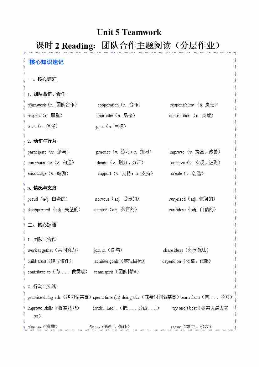 Unit 5 课时2 C Reading:团队合作主题阅读(分层作业)(原卷版)