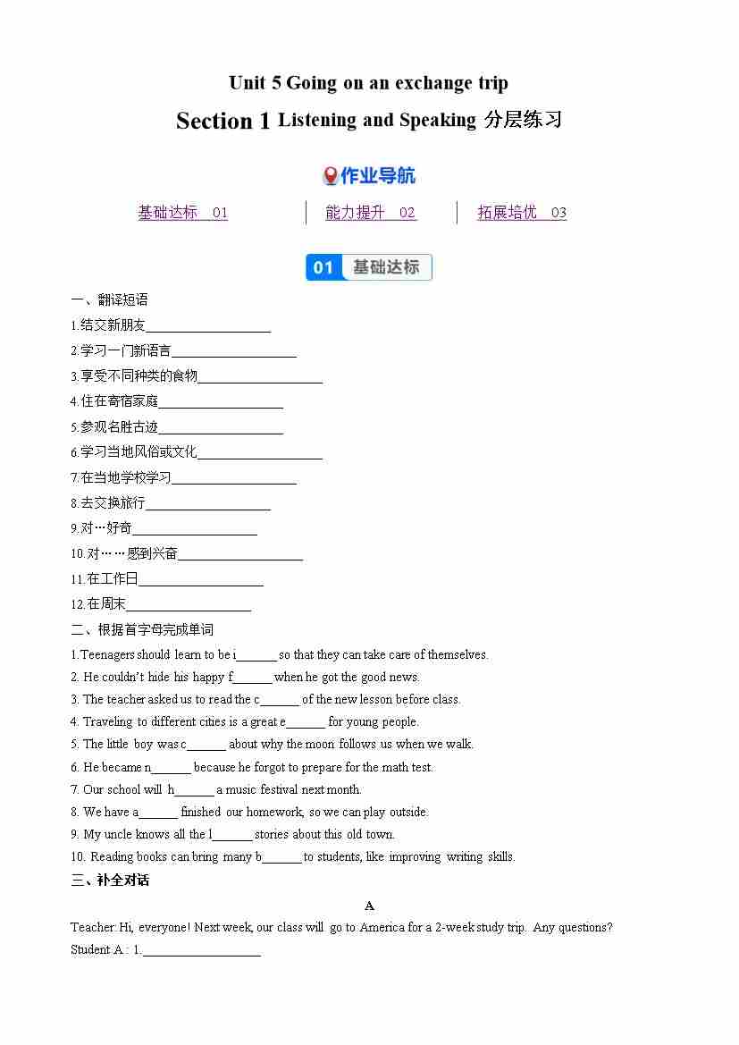Unit 5 课时2 Section 1-3 Listening and Speaking(分层练习)原卷版