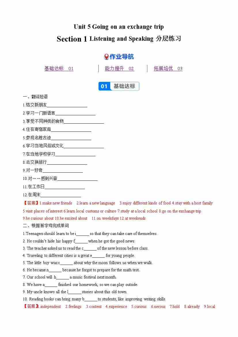 Unit 5 课时2 Section 1-3 Listening and Speaking(分层练习)解析版