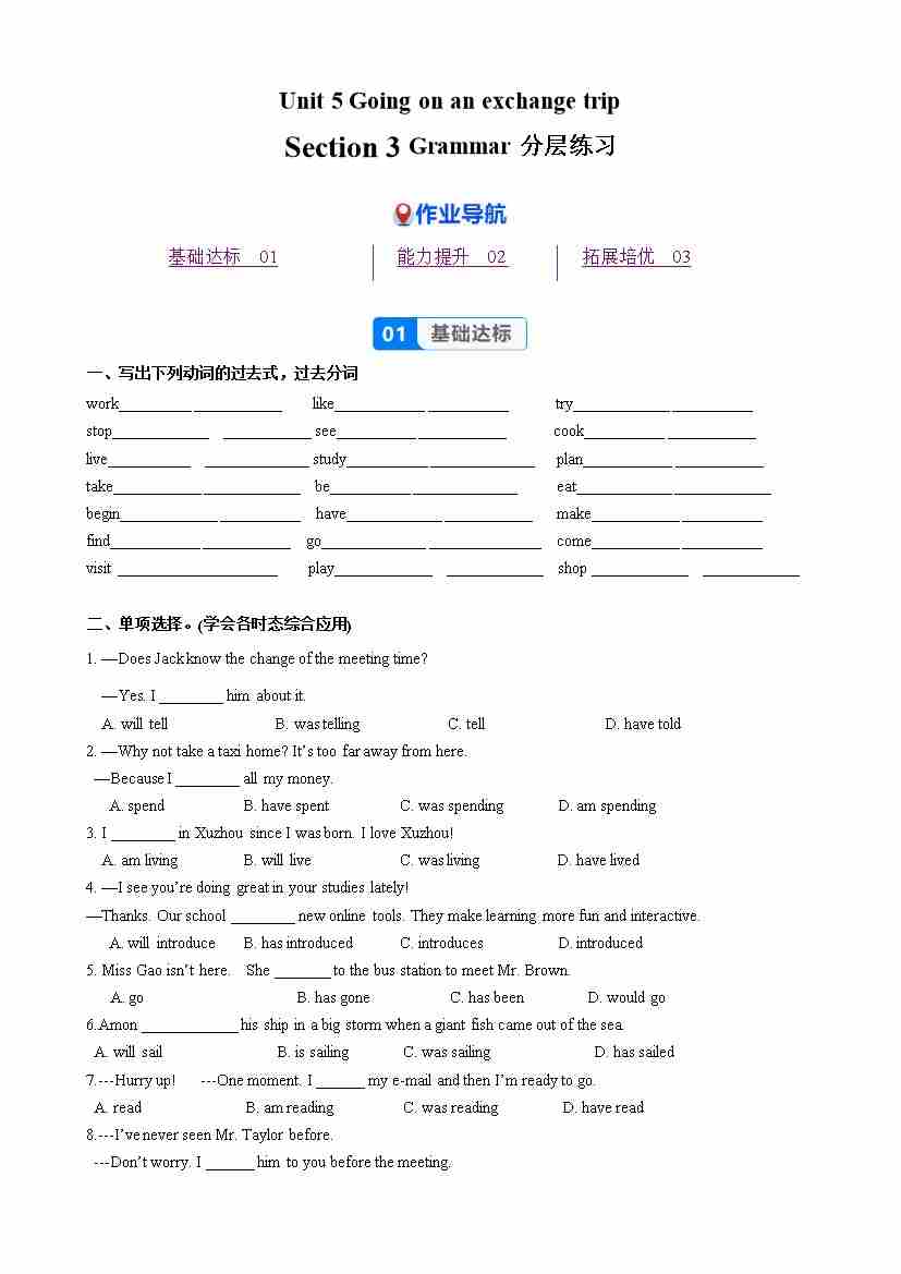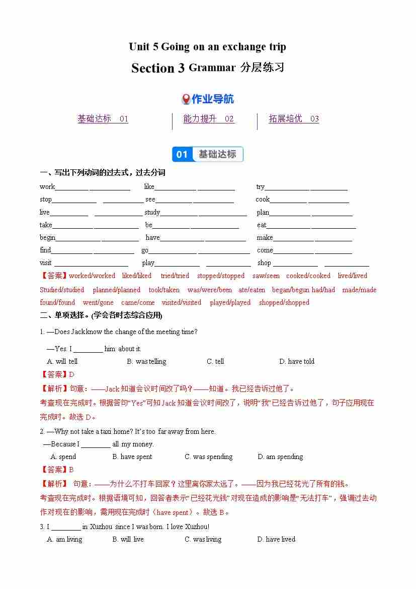 Unit 5 课时3 Section 2 Grammar(分层练习)解析版