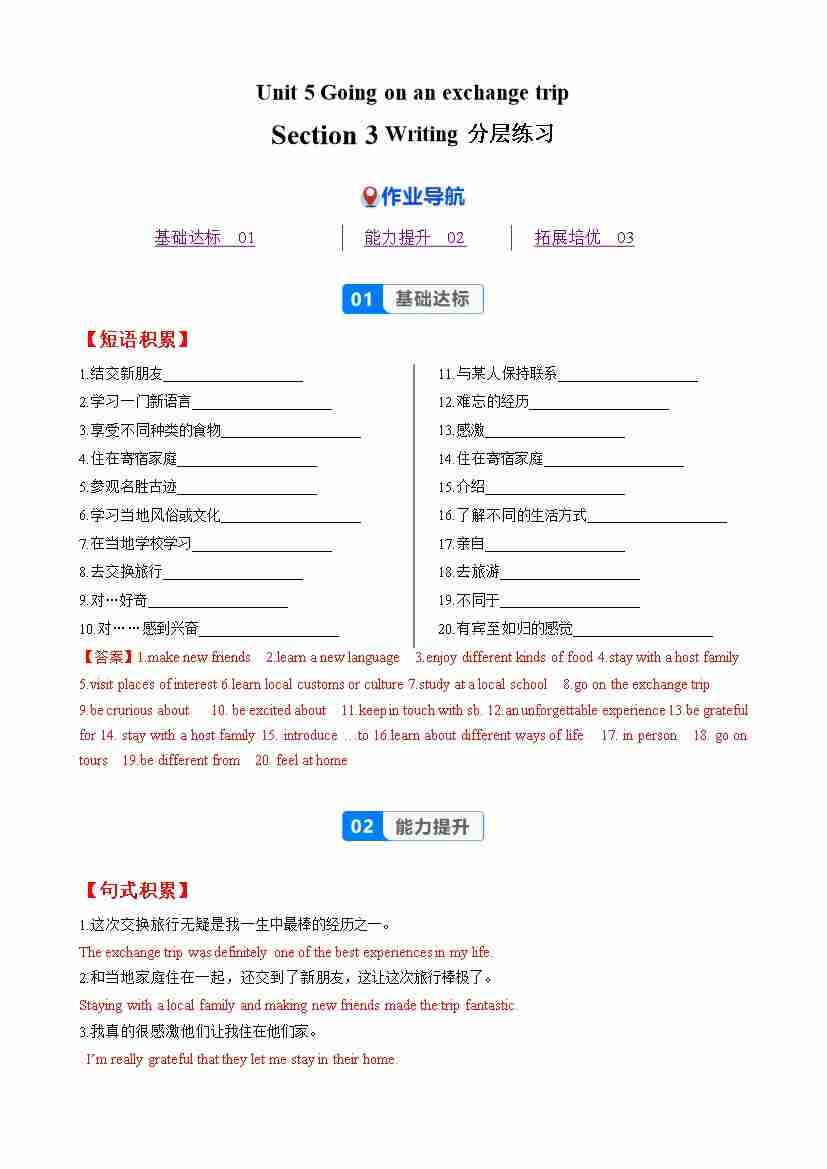 Unit 5 课时4 Section 3 Writing(分层作业)(原卷版)