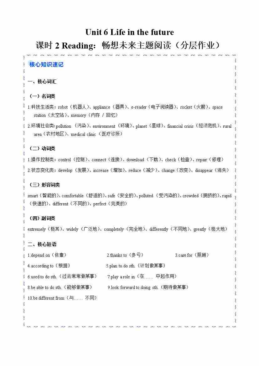 Unit 6 Life in the future 课时2 Reading:畅想未来主题阅读(分层作业)(解析版)