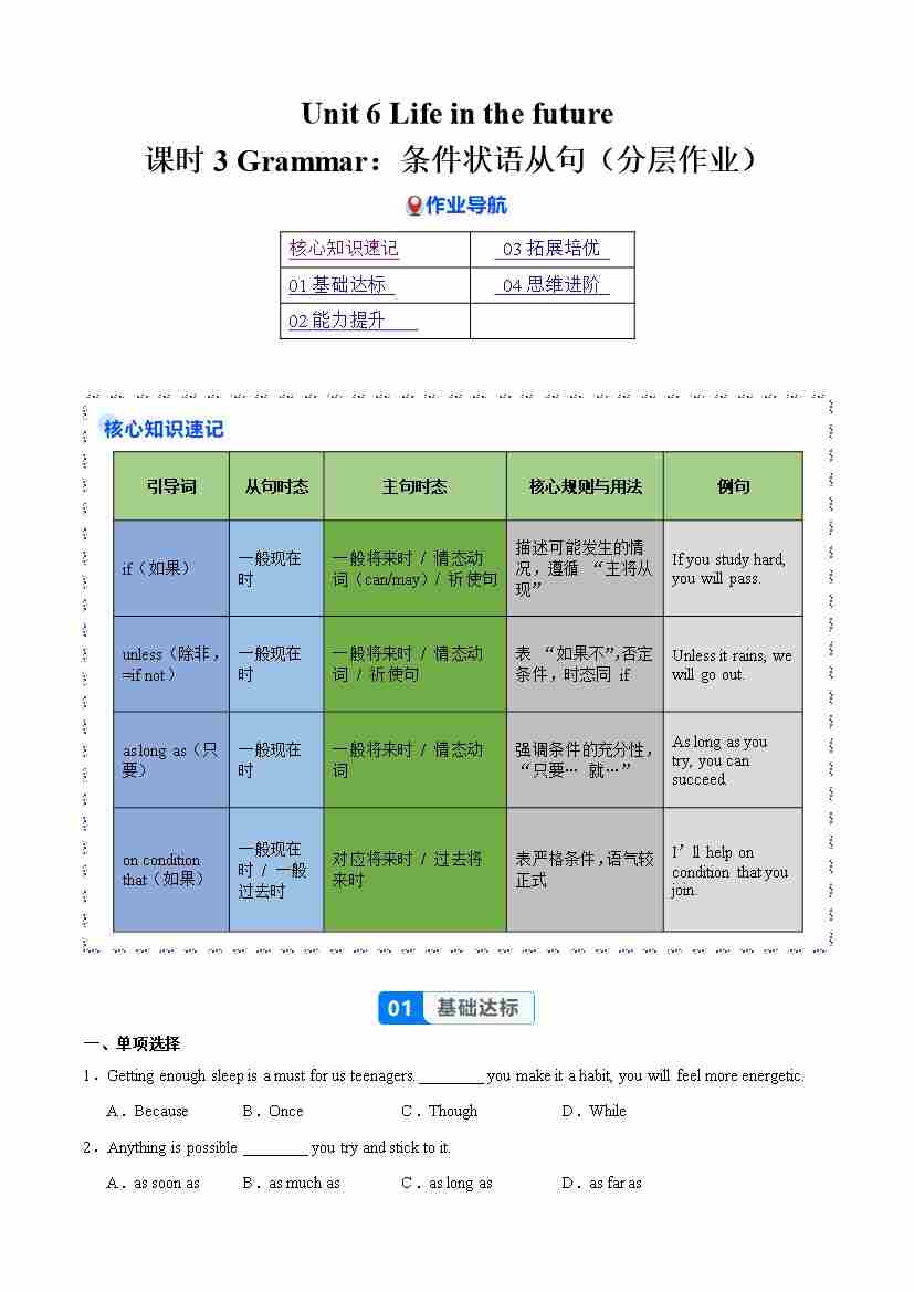 Unit 6 Life in the future 课时3 Grammar:条件状语从句(分层作业)(原卷版)