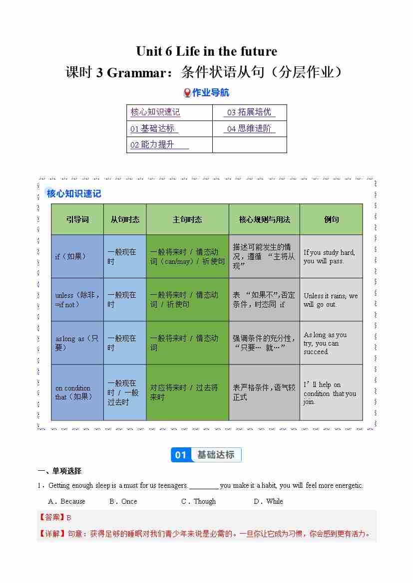 Unit 6 Life in the future 课时3 Grammar:条件状语从句(分层作业)(解析版)