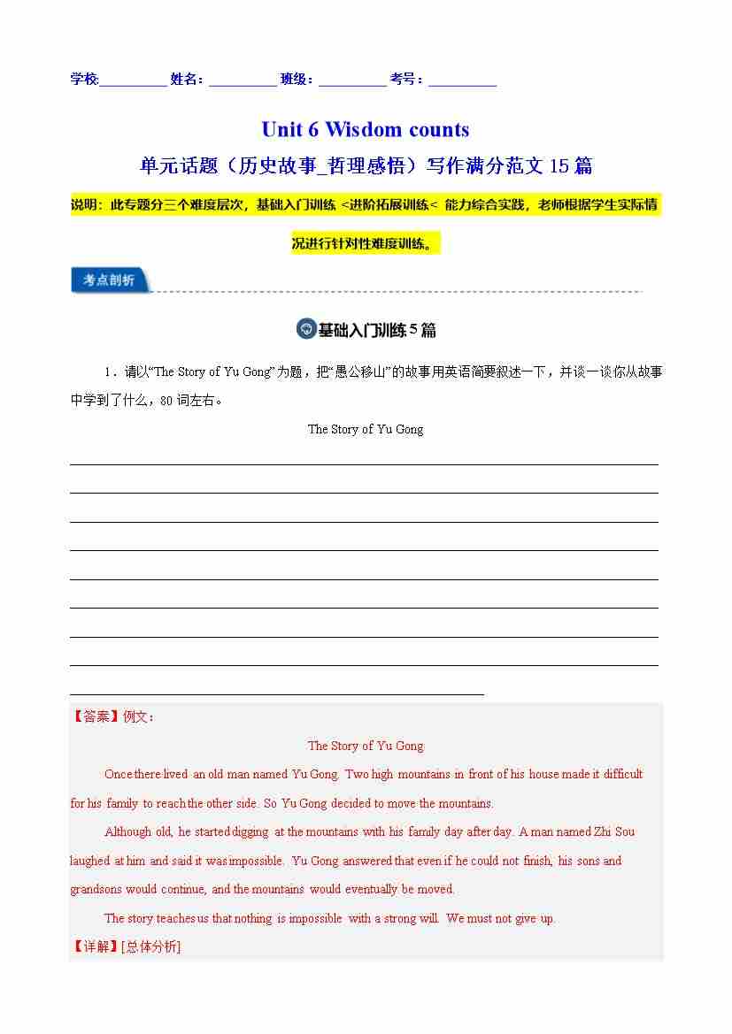 Unit 6 Wisdom counts 单元话题(历史故事_哲理感悟)写作满分范文15篇(学生版)