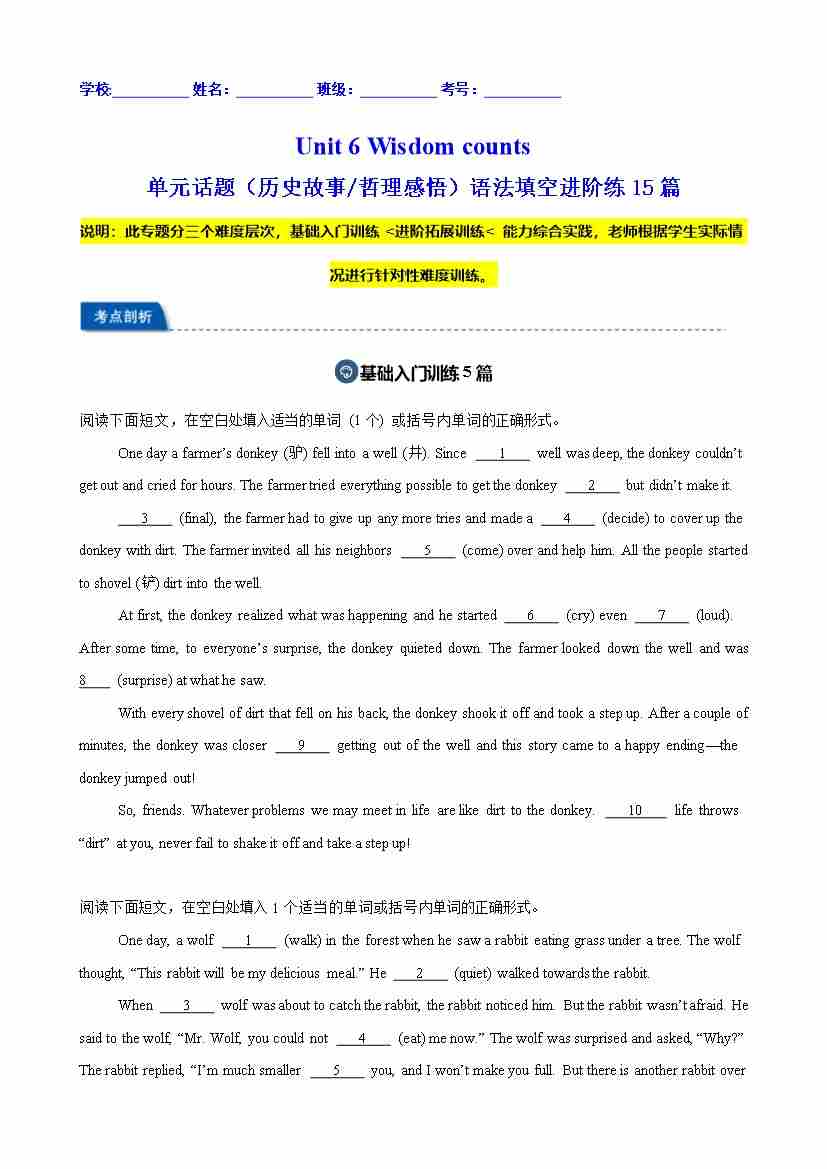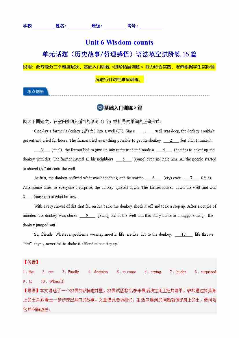 Unit 6 Wisdom counts 单元话题(历史故事_哲理感悟)语法填空进阶练15篇(学生版)