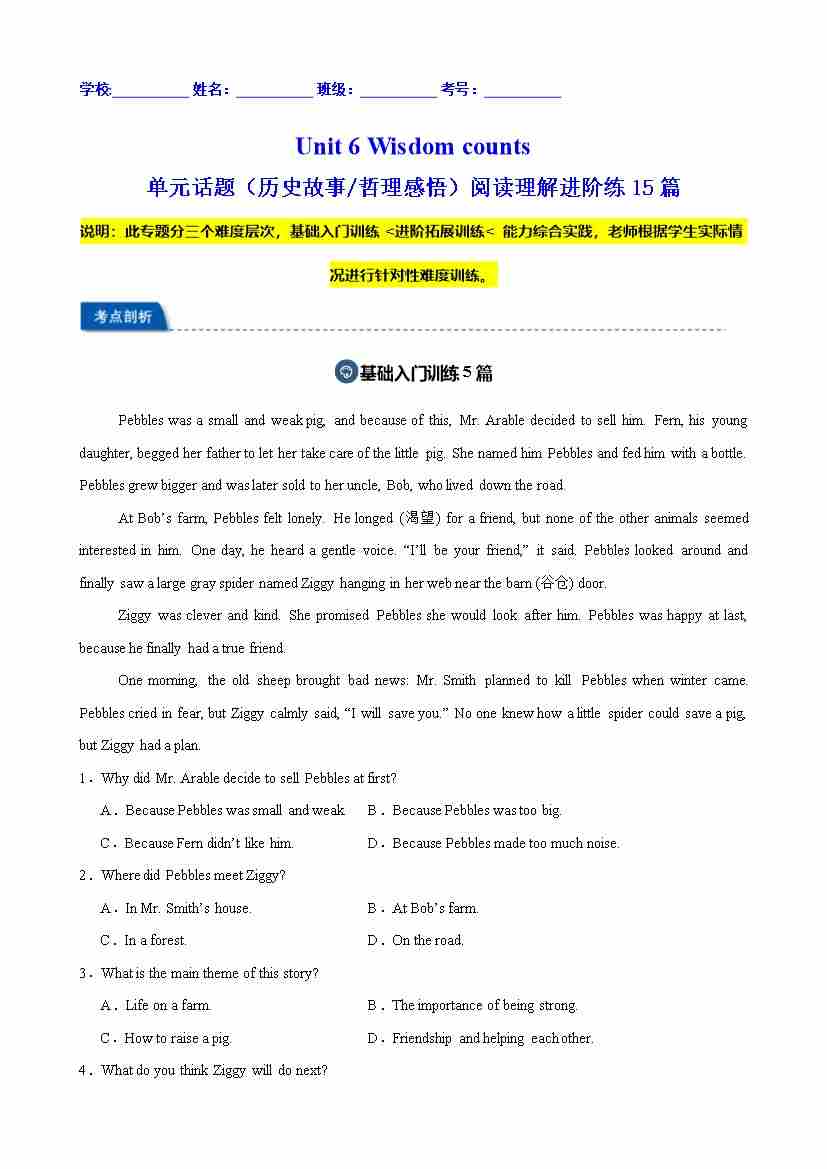 Unit 6 Wisdom counts 单元话题(历史故事_哲理感悟)阅读理解进阶练15篇(学生版)