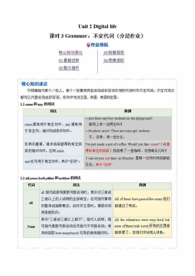 Unit 2 课时3 Grammar(分层作业)(解析版)
