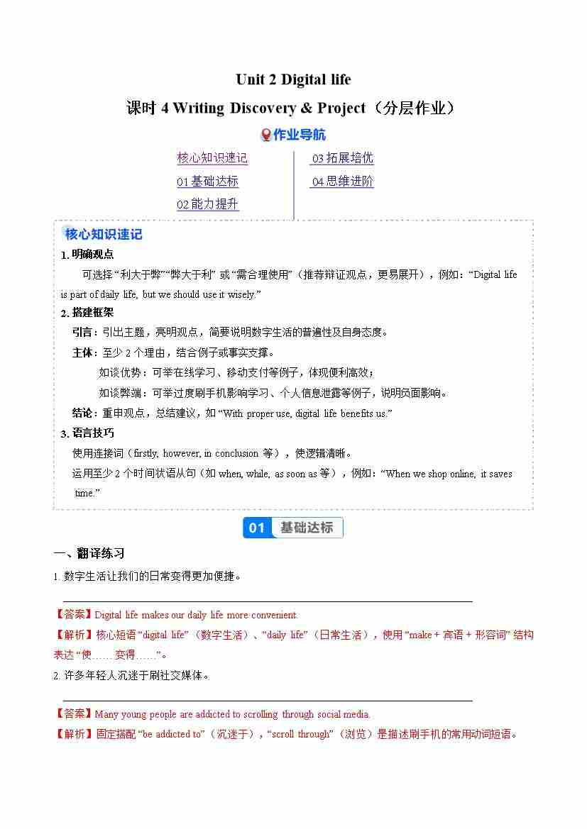 Unit 2 课时4 D Writing & Discovery & E Project(分层作业)(解析版)