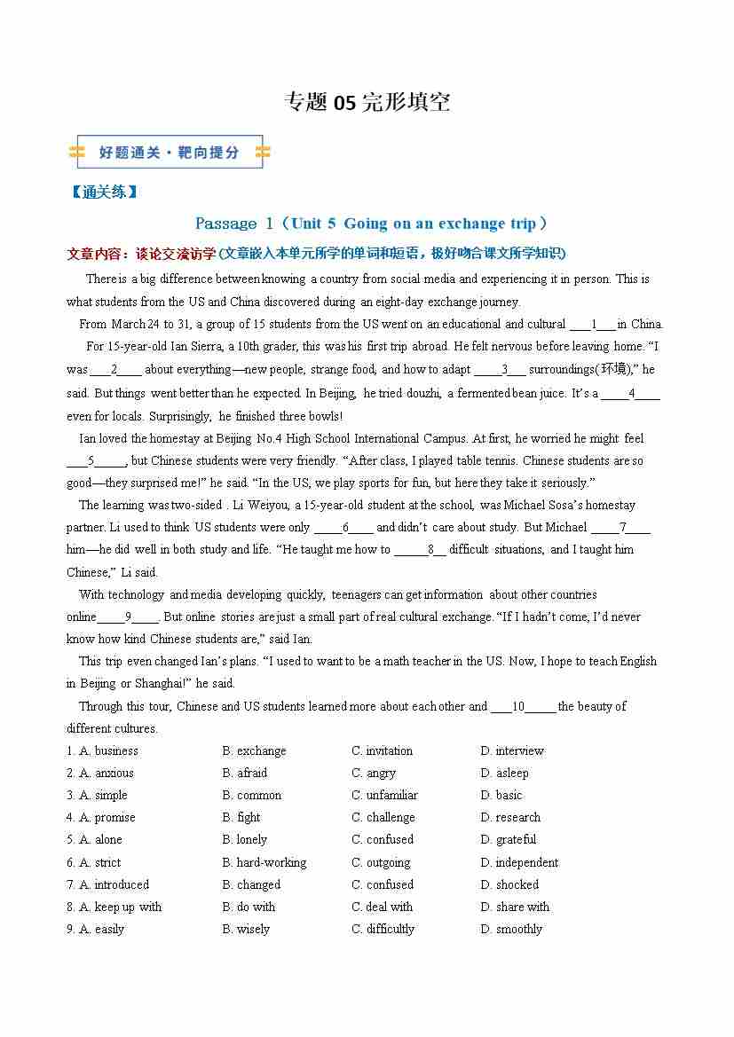 Unit 3 课时1 A Viewing and listening & B Speaking(分层作业)(原卷版)
