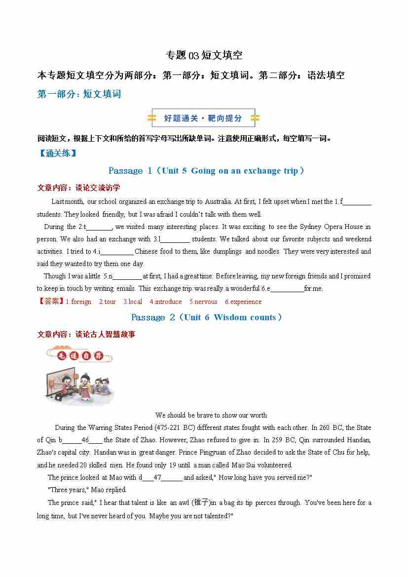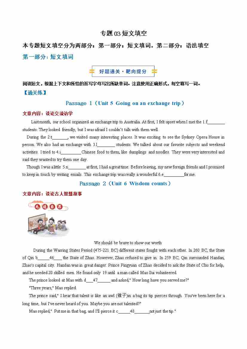 考前押题03 短文填空(期末复习专项训练)(原卷版)