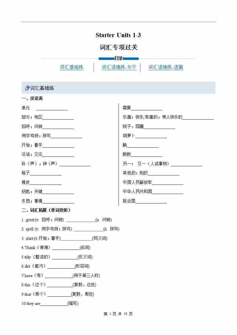 Starter Units 1-3(重难词汇精练)(原卷版)