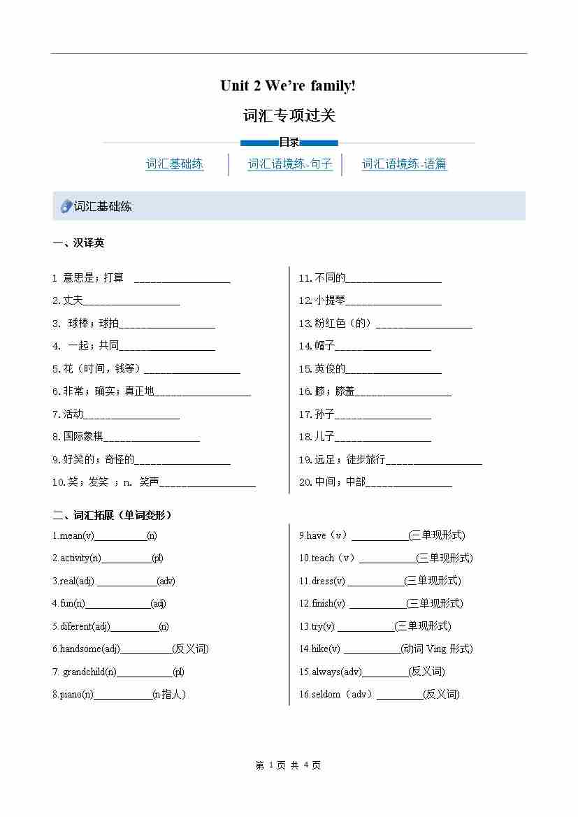 Unit 2 We're family!(重难词汇精练)(原卷版)